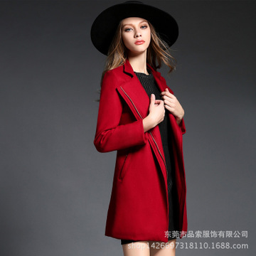 廠家直銷高檔時尚呢料拉鏈羊絨大衣 /
