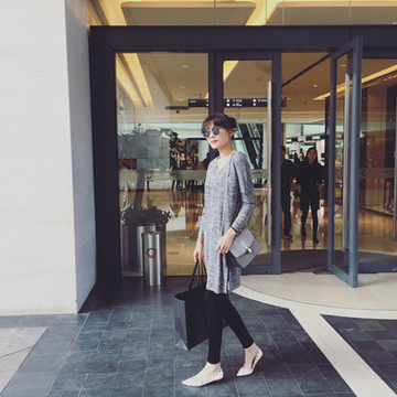 2016春夏季新款時尚潮流女士 麻灰色性感寬松百搭長袖T恤 女 /