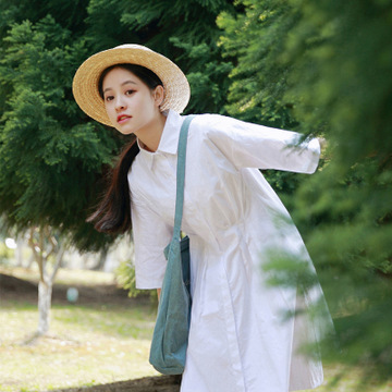 五分袖白色收腰連衣裙 女文藝清新短裙 附內搭吊帶0404花吉Q738 /