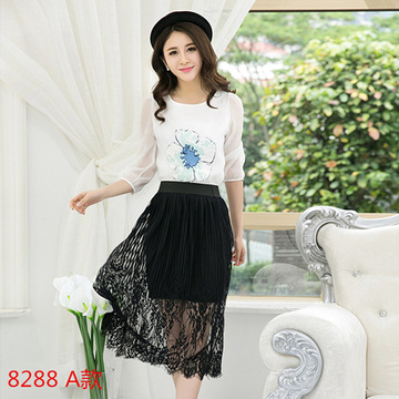 供應2016新款韓版女裝鏤空透視水溶睫毛蕾絲半身裙百搭網紗長裙潮 /
