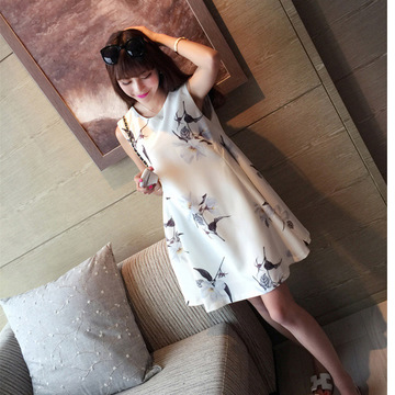 2016夏季時尚新款孕婦裝高級印花A字大裙擺無袖孕婦連衣裙 /