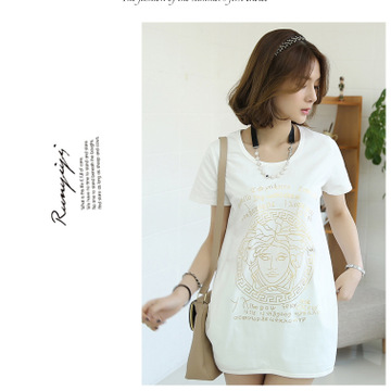 2015夏季新款孕婦裝大碼女裝短袖孕婦T恤中長款韓版顯瘦連衣裙 /
