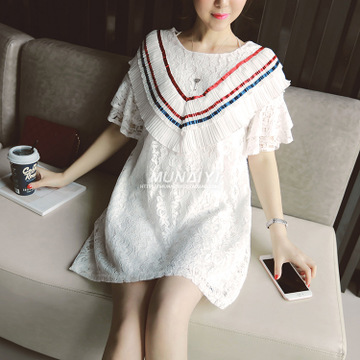 2016夏季新款孕婦蕾絲哺乳連衣裙 百褶荷葉邊喇叭袖喂奶衣 /
