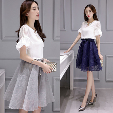 2016夏季時尚氣質兩件套雪紡連衣裙夏中長款寬松顯瘦韓版套裝裙潮 /