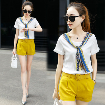 時尚套裝夏季女裝2016新款韓版修身顯瘦短褲短袖小香風休閑兩件套 /