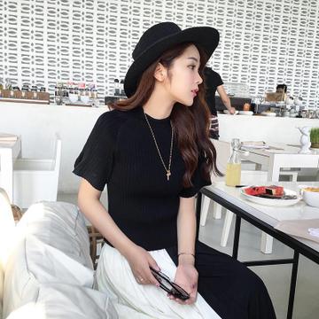 2016新款韓版冰爽絲針織短袖必備款上衣針織衫 /