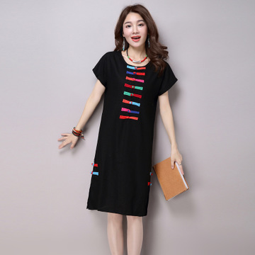 2016夏季新款 中式改良唐裝民族風彩色扣子棉麻裙連衣裙 /