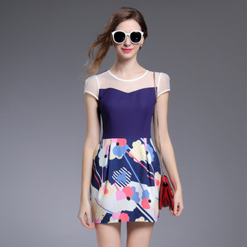 2016夏季時尚大牌連衣裙女裝高端印花修身高腰連衣短裙女 /