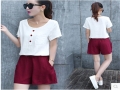 2016夏季新品女裝小香風棉麻T恤亞麻短褲休閑兩件套裝女高質量 /