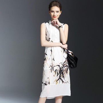 2016夏季新款女裝復古氣質無袖修身印花打底裙雪紡A字連衣裙批發 /