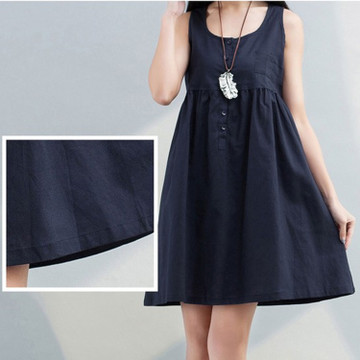 實(shí)拍2016春夏文藝女裝棉麻純色無袖連衣裙短裙背心打底衫現(xiàn)貨批發(fā) /