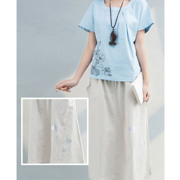 實(shí)拍棉麻連衣裙2016夏女裝大碼短袖T恤 兩件套亞麻半身裙現(xiàn)貨批發(fā) /