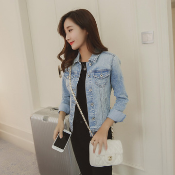 實拍2016年春季新款彈力修身淺藍牛仔外套 /