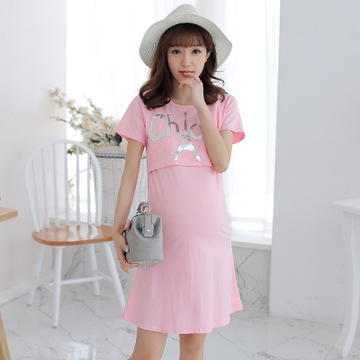新款夏季外出哺乳衣時尚純棉哺乳裙修身顯瘦喂奶衣連衣裙 /