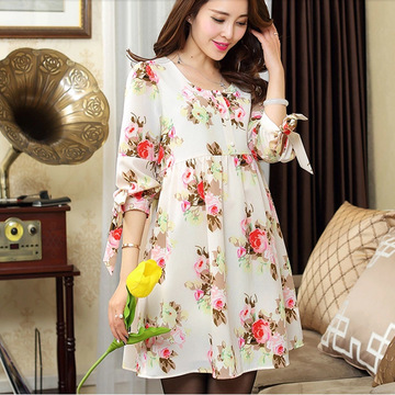 新款春夏季 蝴蝶結孕婦寬松印花孕婦裝娃娃連衣裙 /