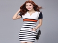 2016夏裝新款女裝圓領條紋修身雪紡連衣裙大碼短袖包臀裙子女潮 /