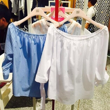 2016夏新款甜美時(shí)尚蝴蝶結(jié)豎條紋襯衫女 /