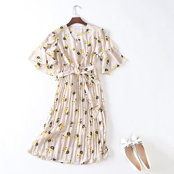 2016夏季女裝新款韓版印花V領(lǐng)連衣裙 /
