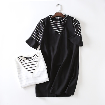 2016夏季女裝新款韓版條紋雪紡假兩件套連衣裙 /