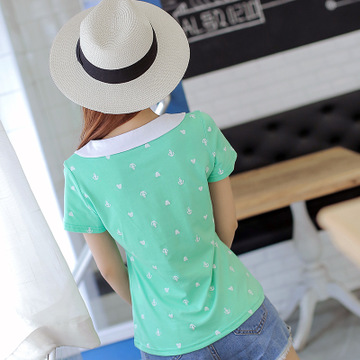 少女夏裝T恤 2015新款全棉娃娃領POLO衫短袖中學生T恤女 /
