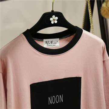 寬松純棉中袖T恤女 韓國東大門2016夏裝韓范貼布印花五分袖體恤潮 /