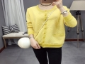 2016春秋新款短款長袖外套女常規款圓領純色開衫上衣 /