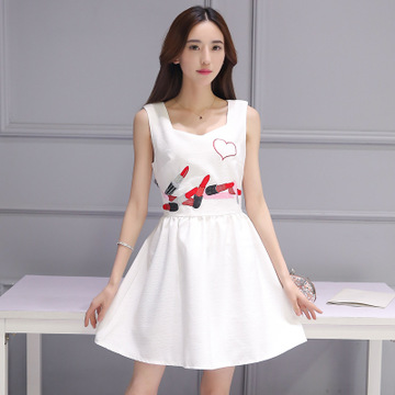 實拍2016夏裝韓版修身顯瘦嘴唇印花無袖小香風打底短裙 /
