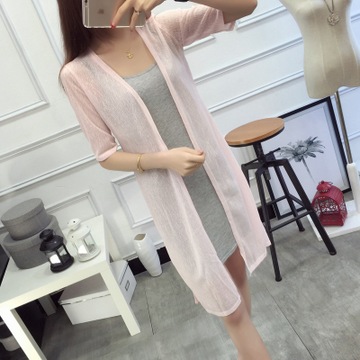 2016春秋新款韓版女毛針織衫中長款顯瘦五分袖外套防曬衣薄款 /