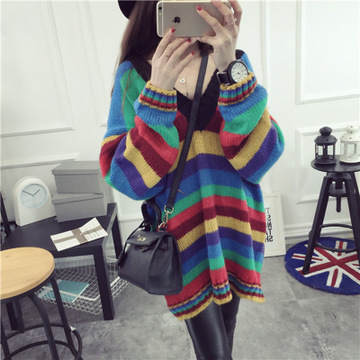 針織衫毛衣女彩色條紋打底衫韓國東大門春裝韓版2016春裝新款 /