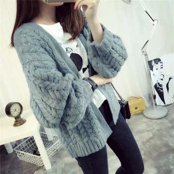 2016麻花針織衫毛衣女外套開衫學生春裝新款百搭韓版東大門 /
