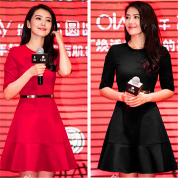 2016早春歐美明星高圓圓同款紅色連衣裙顯瘦晚裝高腰A字打底裙 /