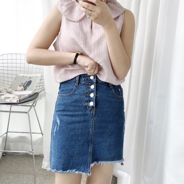 批發韓版女裝半身裙2016春夏修身貓須不對稱流蘇下擺牛仔裙潮1081 /