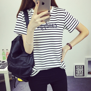 一件代發(fā)女裝2016韓版夏裝新款條紋T恤短袖寬松打底衫批發(fā)網貨源 /