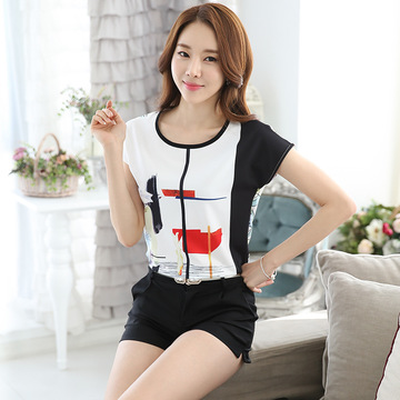 廠家直銷一件代發(fā)2016新款印花短袖雪紡上衣女裝大碼寬松簡約t恤 /