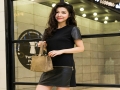 2016春秋新款女裝大碼修身時尚OL拼接Pu皮裙圓領韓版打底連衣裙女 /