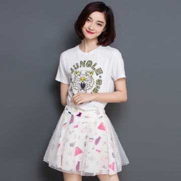 2016春夏新款韓版網(wǎng)紗裙子半身裙雪紡碎花短裙女士百褶裙 /