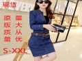 春季女2016新款長袖歐美修身顯瘦氣質包臀牛仔連衣裙女裙 帶抹胸 /