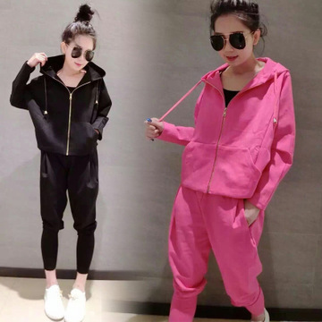2016春季新款女裝休閑長袖兩件套顯瘦修身時尚潮連帽大碼運動套裝 /