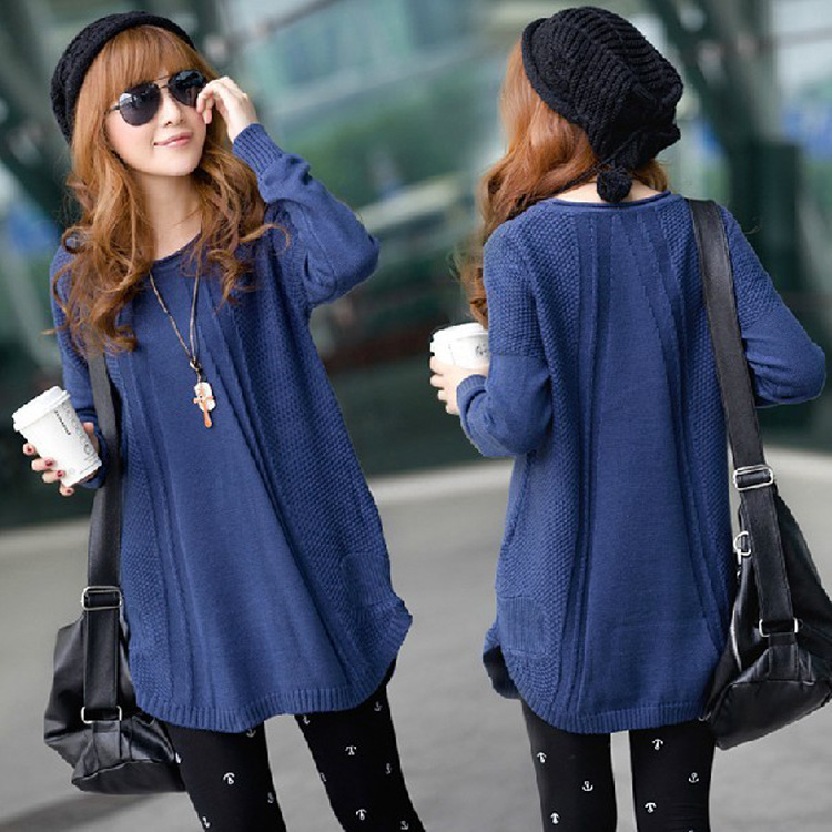 2015春秋裝新款韓版寬松大碼中長款蝙蝠袖針織打底衫毛衣 女 潮 /
