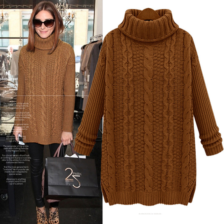歐洲站2015新款秋冬季歐美女裝中長款高領(lǐng)針織衫麻花長袖毛衣 /