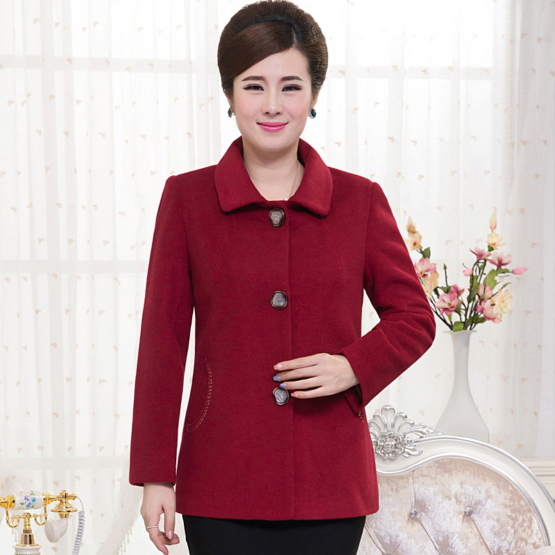爆款秋冬新款中老年女裝大碼羊毛呢大衣媽媽裝短款上衣呢子外套女 /