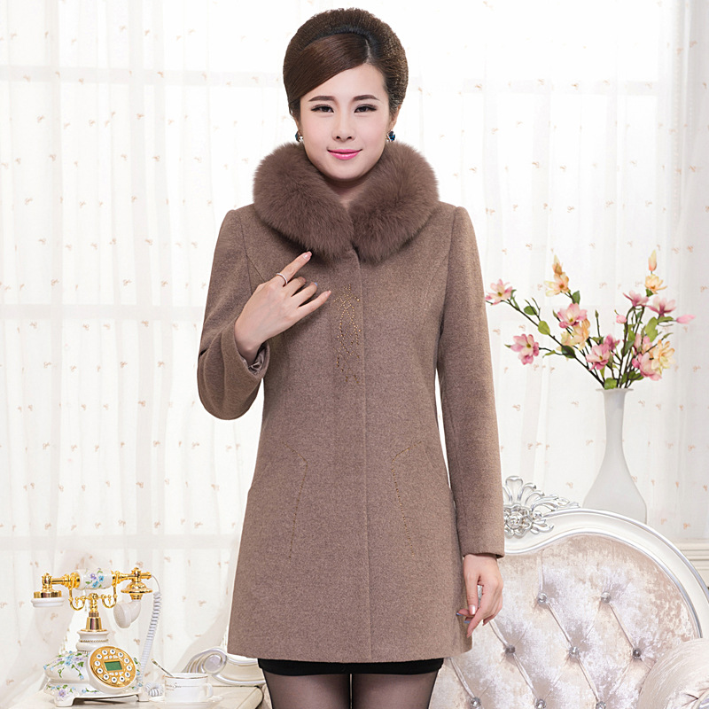 秋冬裝新款中老年女裝中長款呢子大衣女媽媽裝羊毛呢外套廠家直銷 /