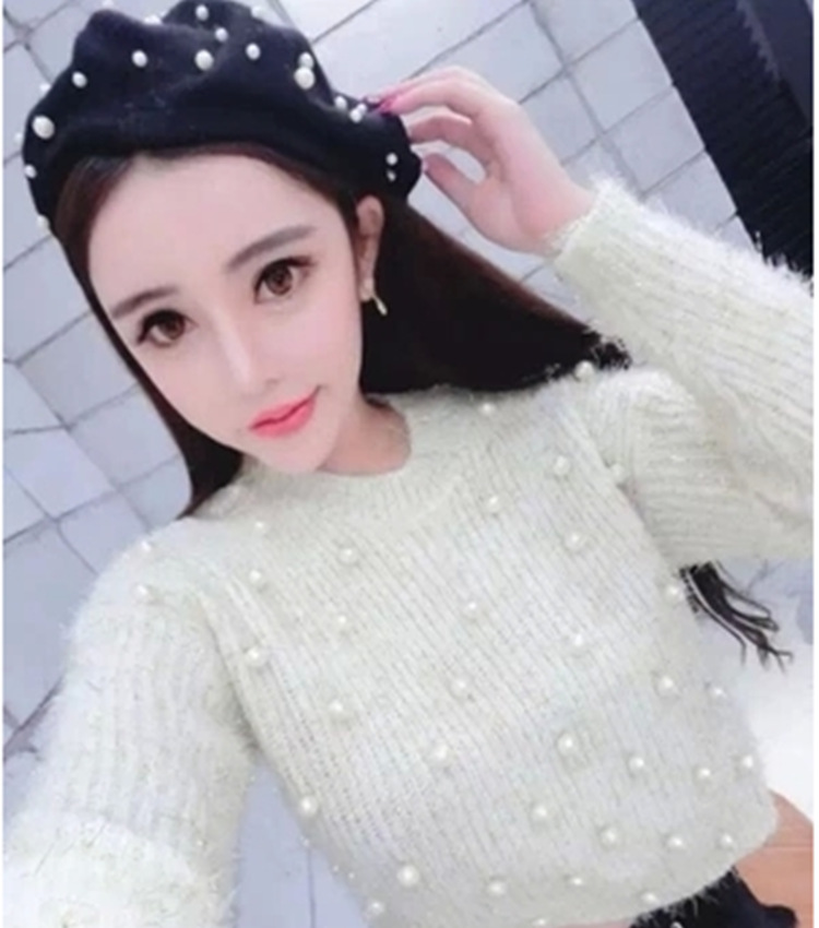 2015秋冬季新款甜美珍珠金絲百搭毛衣針織衫女 /