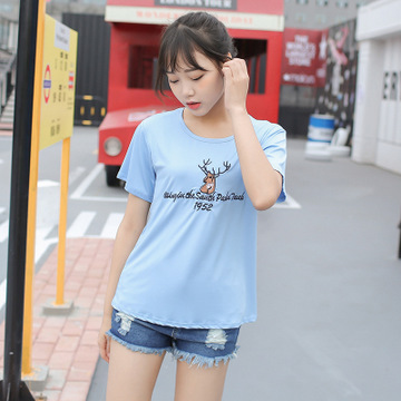2016夏季新款女裝 超多色韓版學(xué)生學(xué)院風(fēng)鹿頭字母刺繡短袖T恤上衣 /
