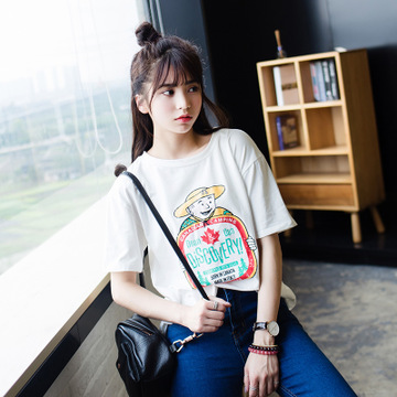 2016夏季新款女裝 韓版學(xué)生學(xué)院風(fēng)卡通印花短袖T恤上衣 /