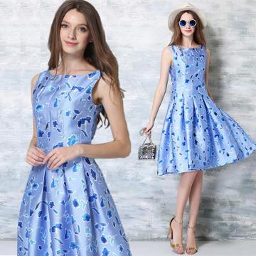 2016春夏新款淑女風無袖大擺印花連衣裙 /