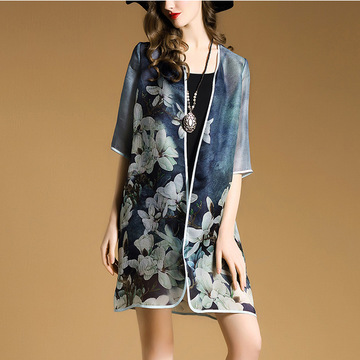 2016春夏新款高端真絲女裝印花開衫外套寬松款空調衫 /