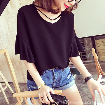 小銀子2016夏裝新款韓版領口鏤空星星裝飾舒適寬松短袖T恤 /