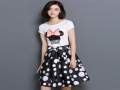 春夏新款韓版修身套裝學院風波點印花連衣裙套裝 兩件套裙女 /