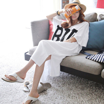 孕婦裝2016夏季新款韓版長款寬松字母開叉孕婦連衣裙 /